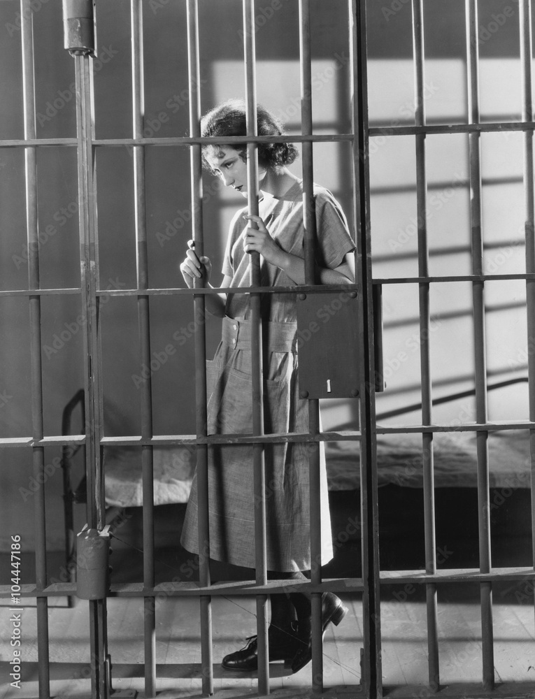 Woman Through Bars Of Jail Cell Wall Mural Wallpaper Murals