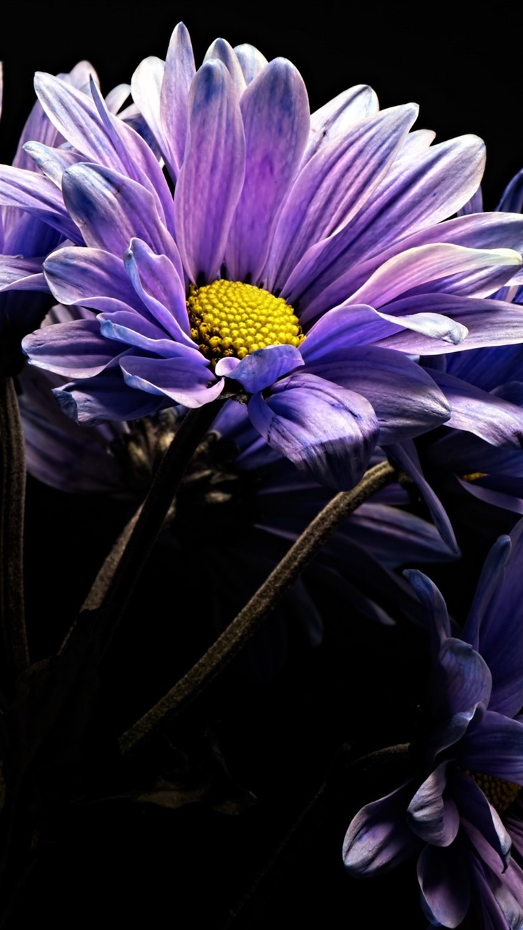 Iphone Wallpaper Purple Gerbera Flowers Black Background Purple