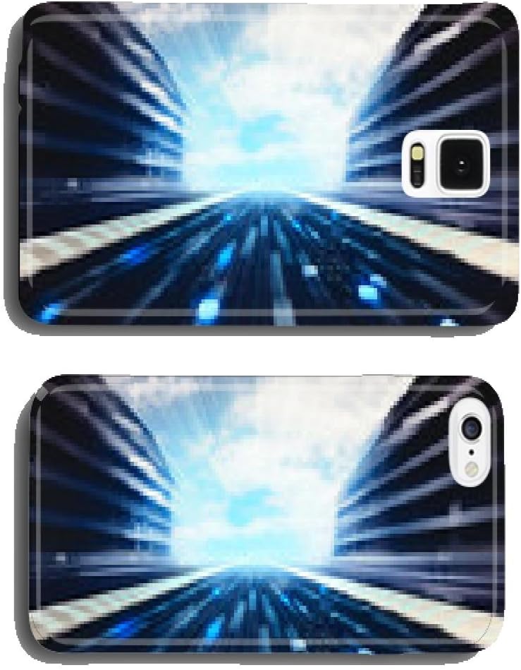 Blue Futuristic City Street With Binary Code Road Wallpaper Cell