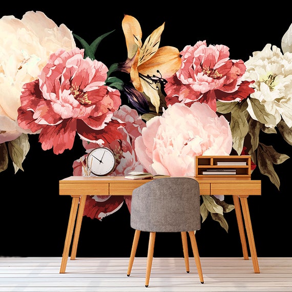 Wallpaper Girls Room Floral Removable Wallpaper Peony Teen Etsy