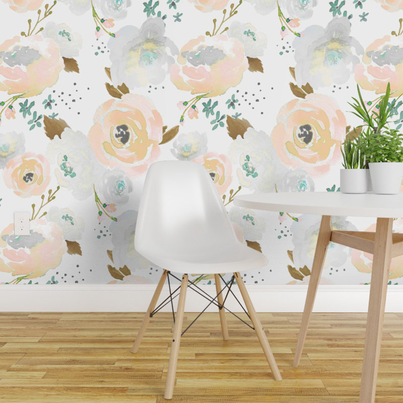 Floral Wallpaper Blush Flowers Painted F Spoonflower